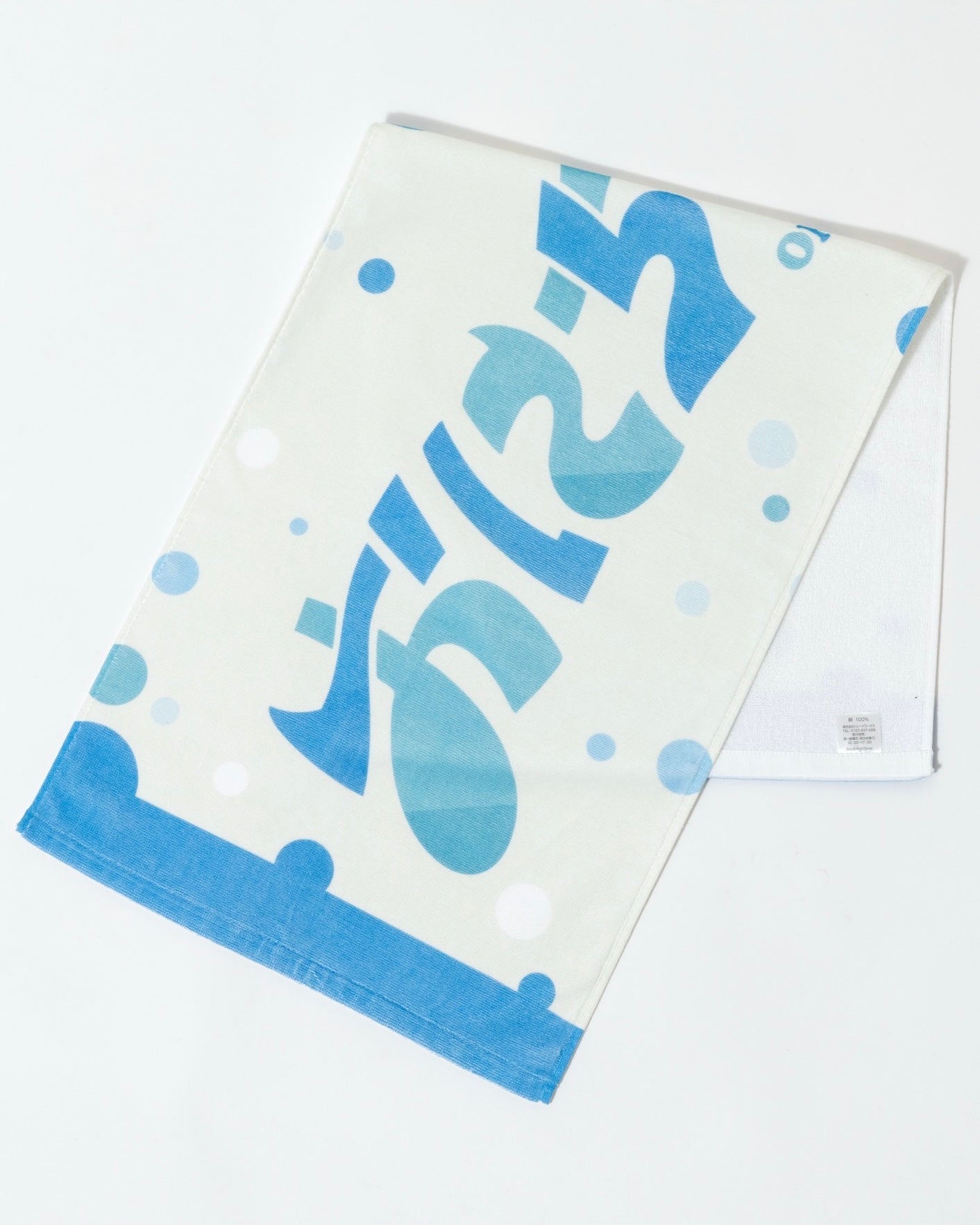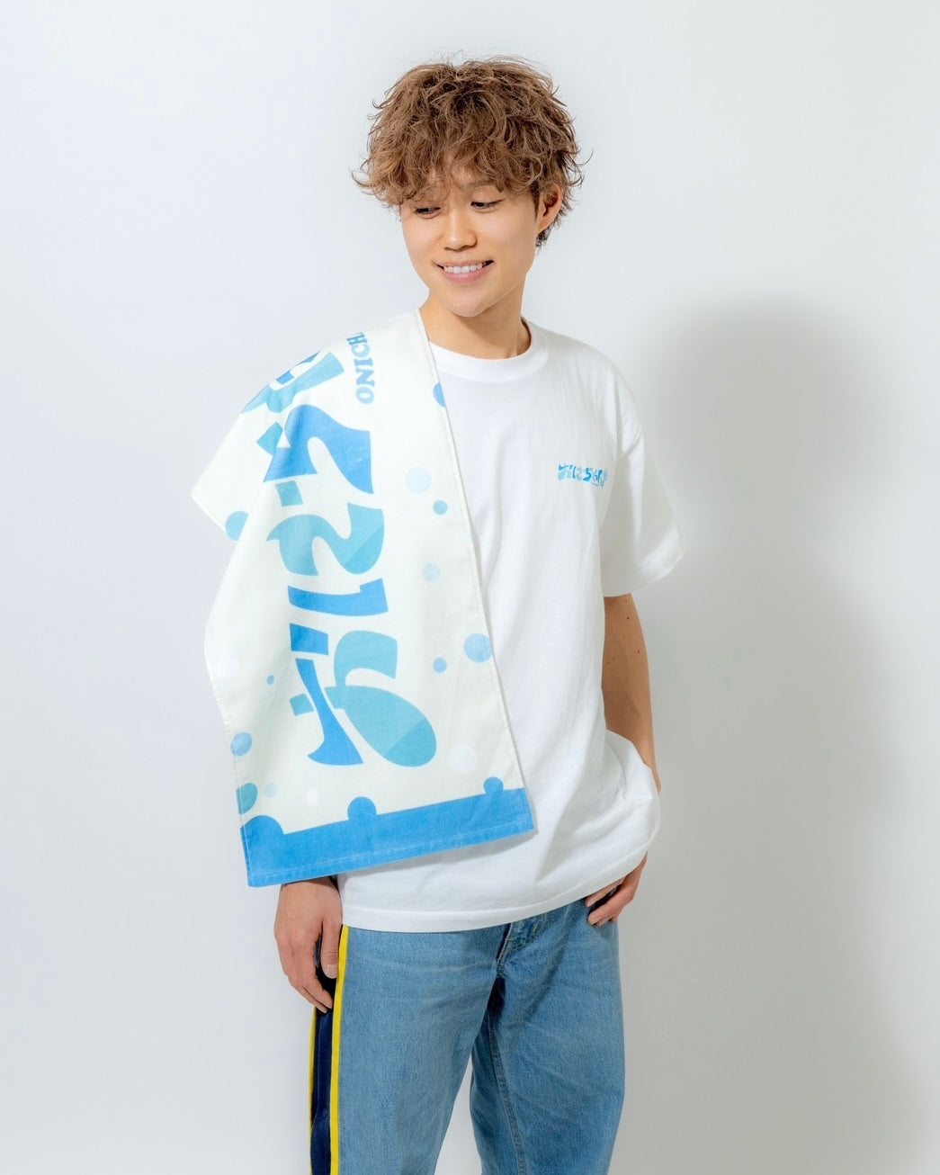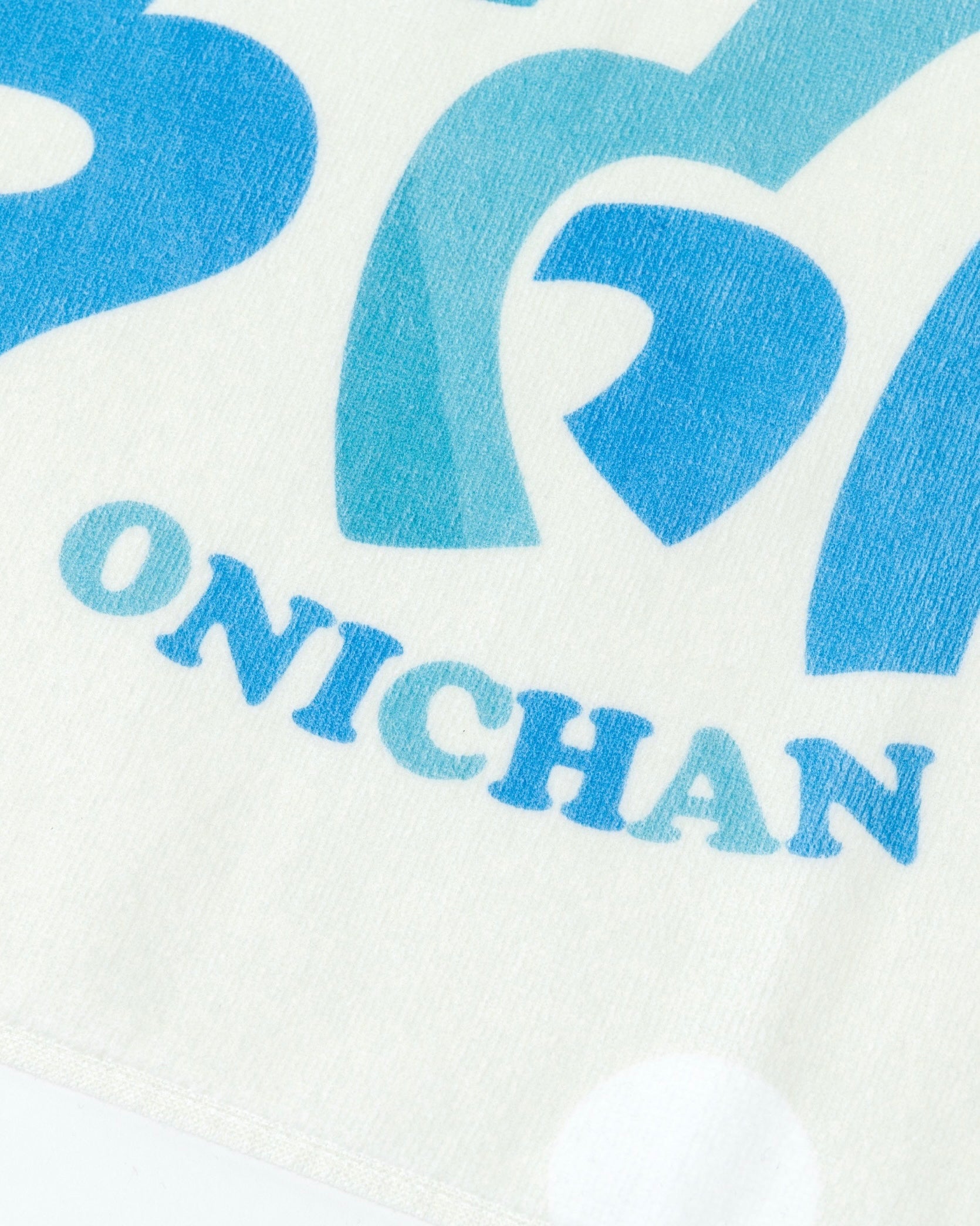 爽やかなカラーリングと水玉模様がおにちゃんロゴと絶妙にマッチしたロゴタオル!